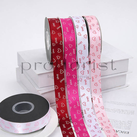 Wstążka satynowa z nadrukiem LOVE 2,5 cm × 33Y