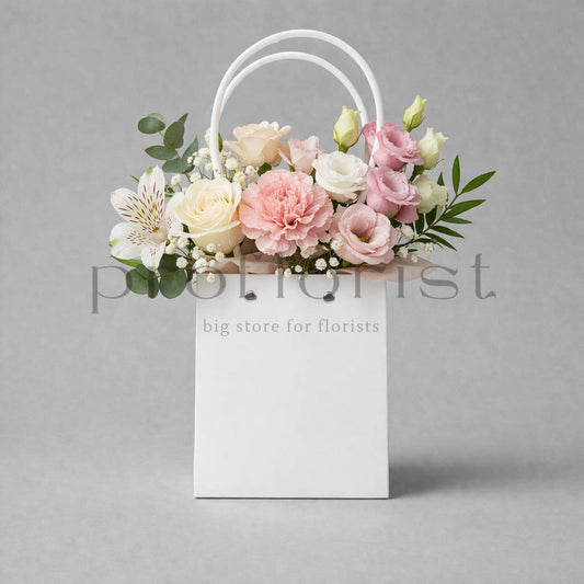 Papierowa torebka na kwiaty biała z lamówką 15×13×13
