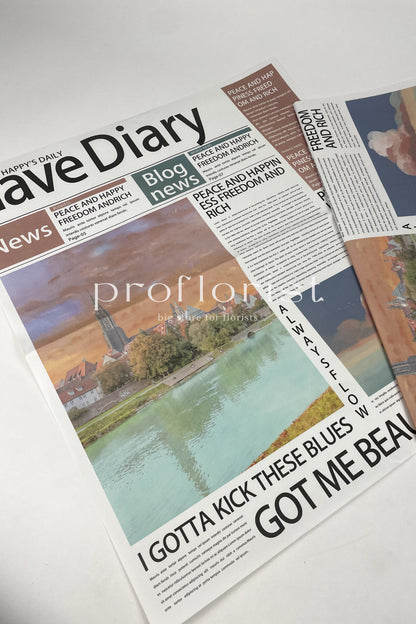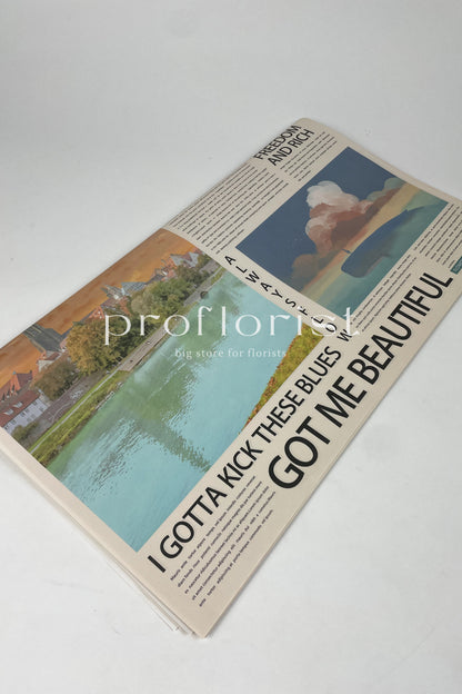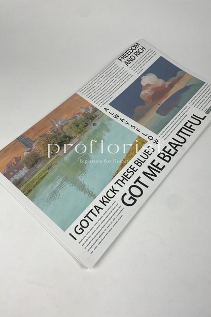 Papier ozdobny w stylu kolorowej gazety do pakowania kwiatów oraz prezentów.